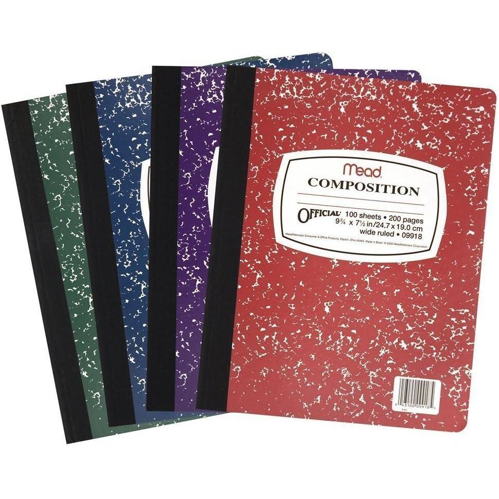 Mead Composition Book 2-Pack: 100 sheets, wide ruled, assorted colors (09918)