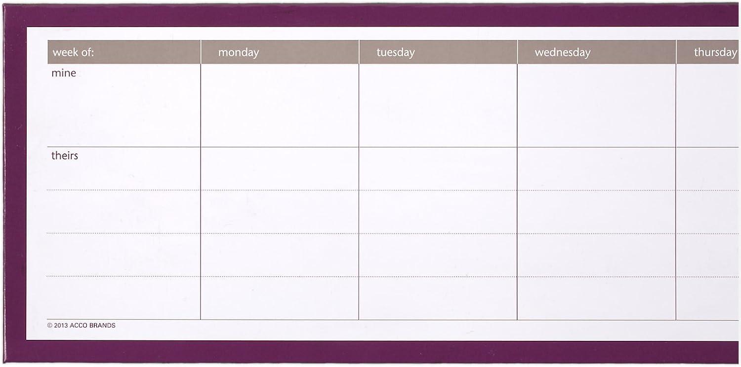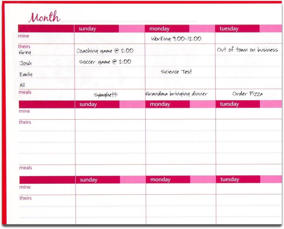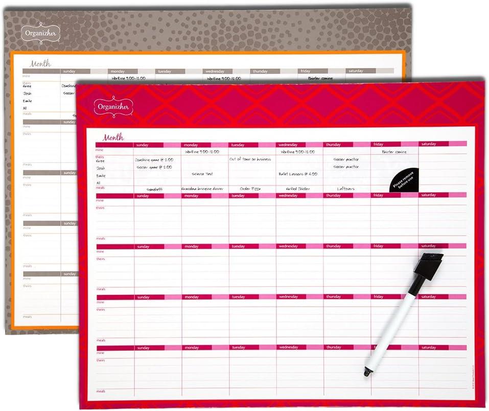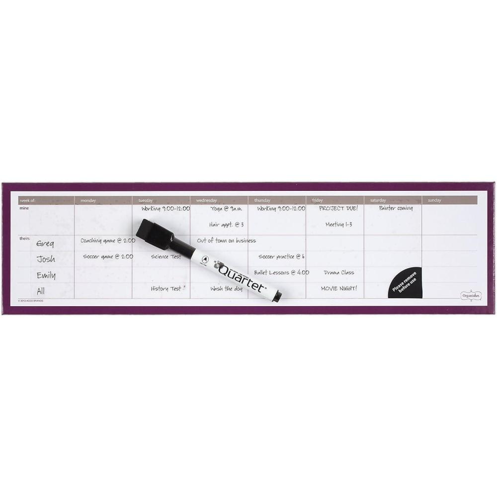 Being a Mom is a full-time job. You're the queen of budget tracking and meal planning, juggler of multiple schedules and deadlines, and an all-around miracle worker. Designed with busy households like yours in mind, Mead Organizher products help bring all of the hats you wear together under one coordinated system that allows you to organize, track and plan, so keeping up with the pace of family life is easier and less stressful. The Organizher Write ‘N Wipe Weekly Undated Calendar is a reusable, undated dry-erase planner that allows you to view the month at once with designated areas for your schedule, your family and friends' schedules. It easily attaches to any magnetic surface and includes a black dry-erase marker. 15 x 4 inch calendar includes white ruled blocks with pink and orange accents.