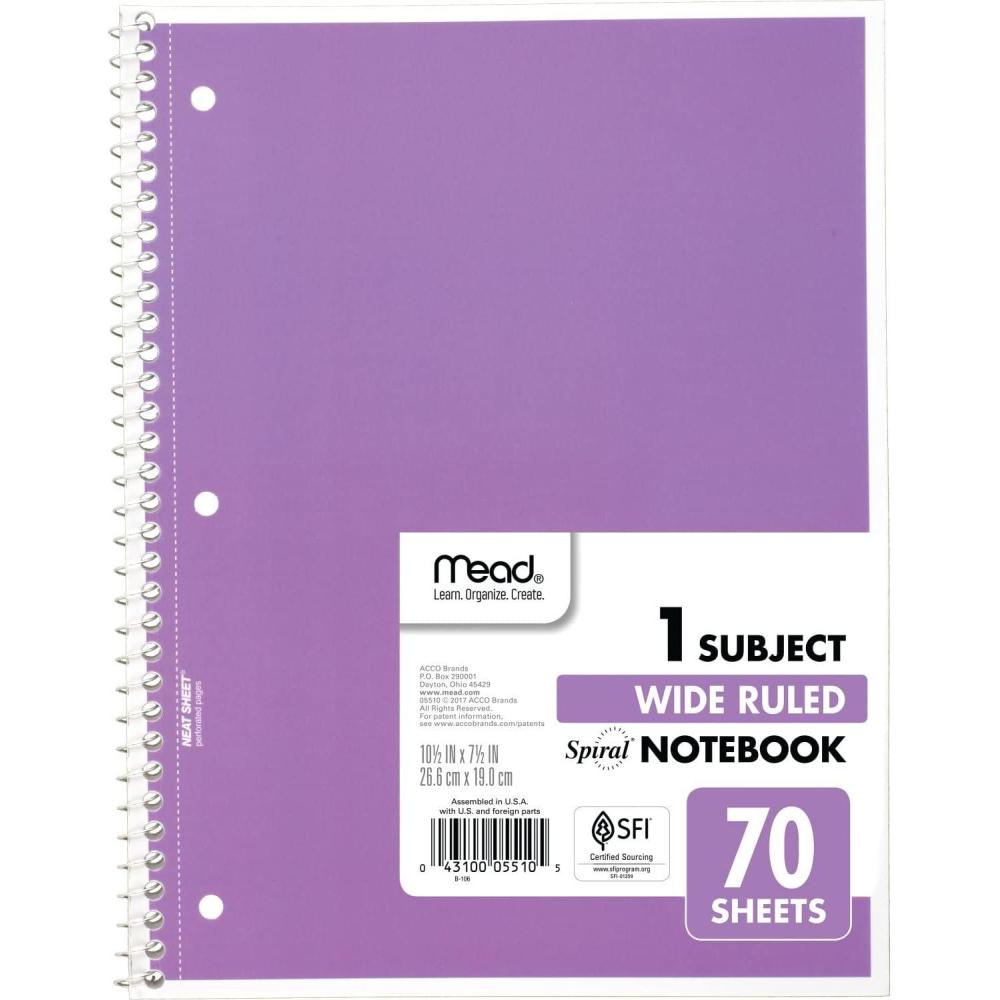 Be the first to review “Mead Spiral Notebook, 1 Subject, Wide Ruled Paper, 70 Sheets, 10-1/2″ x 8″, Green (05510AC5)(Purple)”