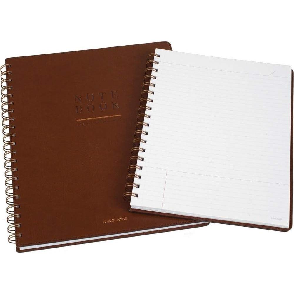 Professional notebook features distressed, faux-leather covers to provide effortless style that fits in perfectly at the office. Durable covers keep your pages securely in place and keep up with your busy schedule. Double-wire binding allows pages to turn completely over and lie flat on tables for easy writing. Designated section for the date is included in the top right corner of every page for future reference. Task section at the bottom separates key takeaways from other notes to make it easy to prioritize. Notebook is perfect for business meetings, project notes and more.